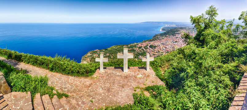 Il sentiero inizia da Piazza Primo Maggio a Palmi e conduce alla zona dell’Acqua dei Cacciatori, a strapiombo sul mare. Da qui, inizia una salita tra mulattiere antiche, scogliere spettacolari e vedute mozzafiato sullo Stretto di Messina e sulle Eolie. Il tratto culmina sul Monte Sant’Elia, dove sorge uno dei belvedere più belli della Calabria.